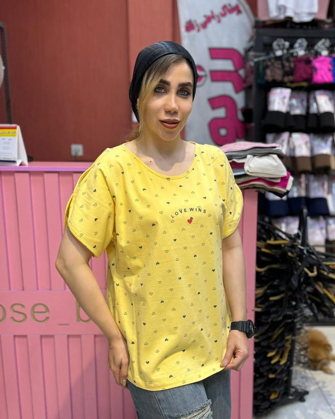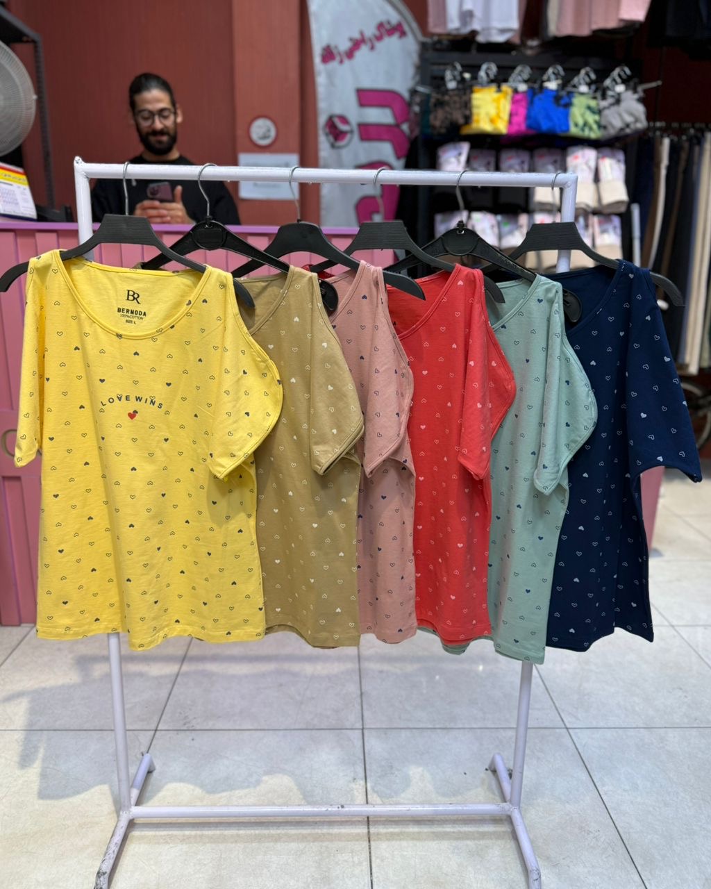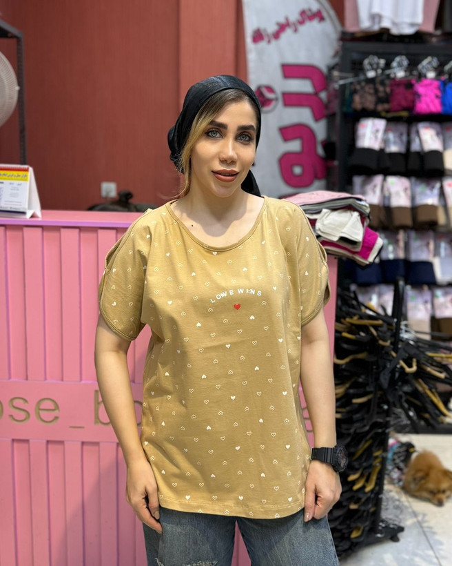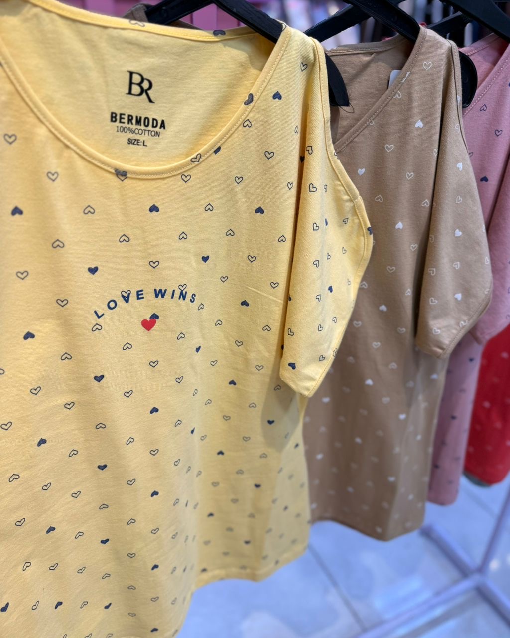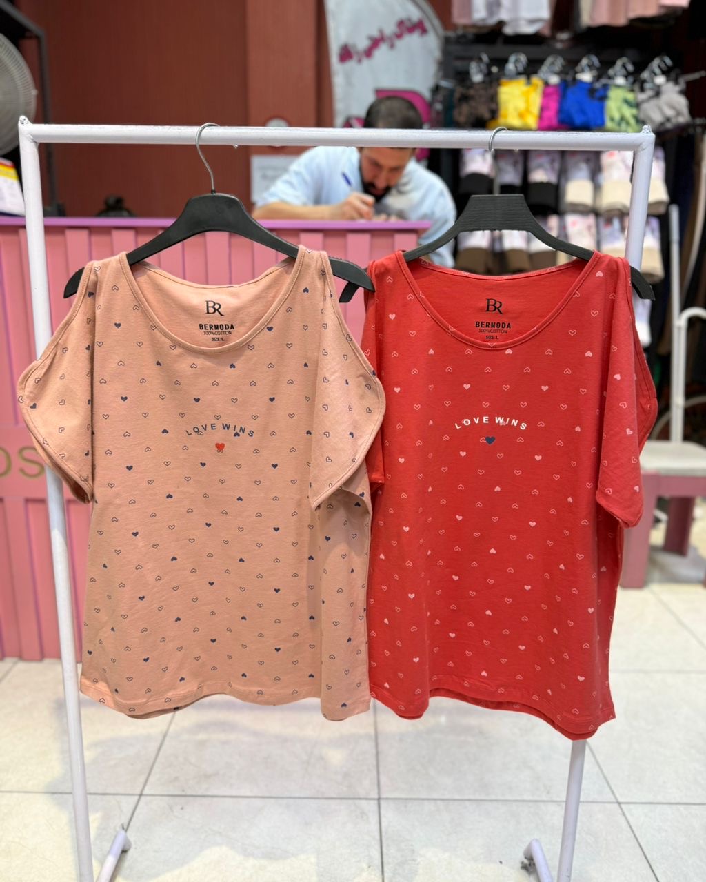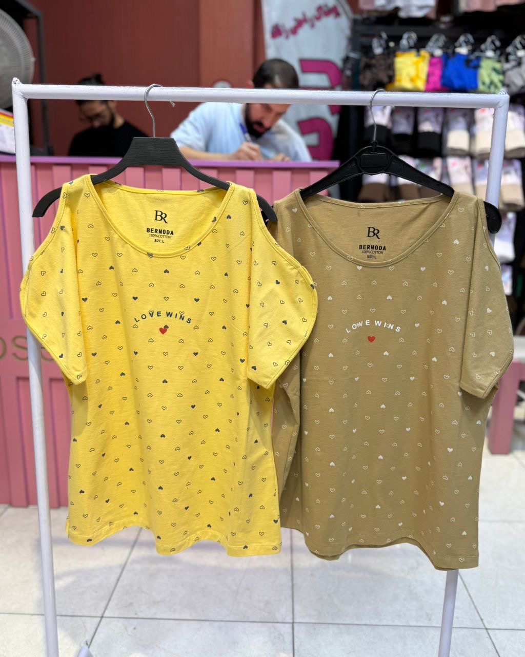 ✔️تیشرت تمام چاپ قلبی سرشانه باز