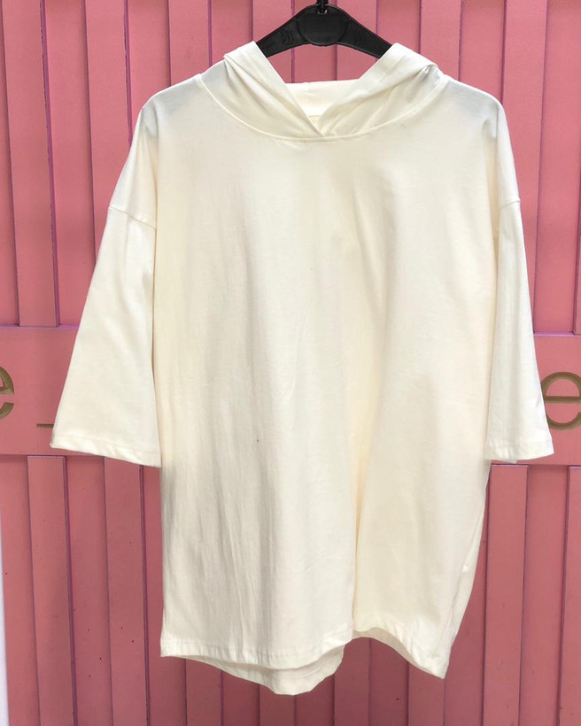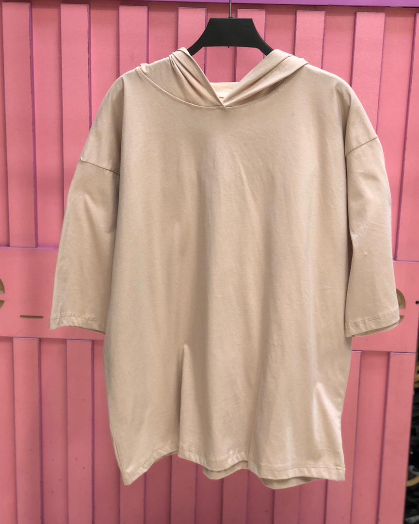✔️تیشرت باکسی کلاهدار ساده