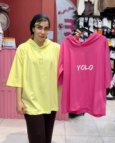 تیشرت باکسی کلاهدار پاپیون و یولو